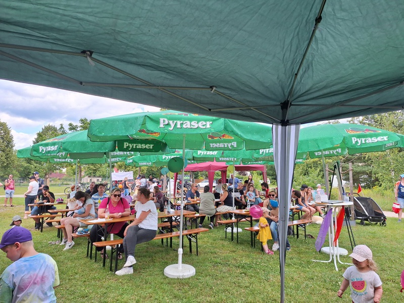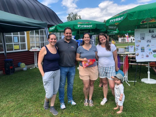Danke an die Schmidt-Backstube für Semmeln und Brezen zum Sonderpreis, die Pyraser Landbrauerei GmbH & Co. KG für Getränke, Biertischgarnituren und Schirme, Edeka-Fischer für die kurzfristige Bestellung und all unseren fleißigen Back-Bienchen, die so tolle Kuchen, Muffins und Kekse gezaubert haben. Danke auch an alle Helfer beim Aufbau, Abbau und Verkauf, ihr wart einfach klasse! Nur durch euren Beitrag konnte das Jubiläumsfest so gut werden.