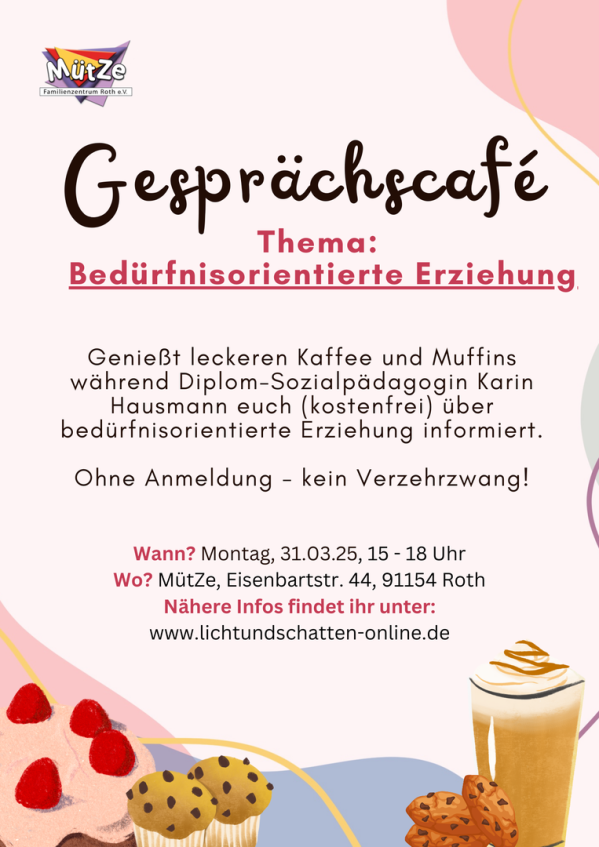 Genießt ein leckeres Frühstück (28.03.) oder Kaffee mit Muffins (31.03.) während Diplom-Sozialpädagogin Karin Hausmann euch über das Thema bedürfnisorientierte Erziehung informiert.