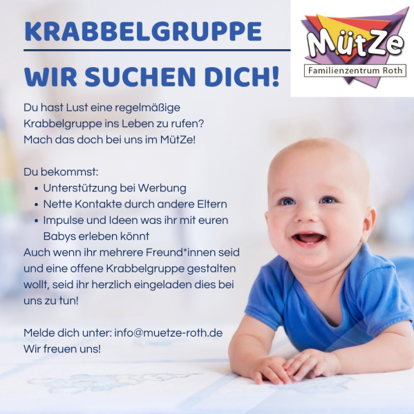 Du hast ein Kind im Krabbelalter oder dein Baby ist jünger oder älter und du hast trotzdem Lust eine kleine feine Runde in netter Gesellschaft zu starten? Super! Dann melde dich bei uns. Wir unterstützen dich beim Werbung machen und haben auch ein paar Impulse und Ideen für die Gestaltung parat.